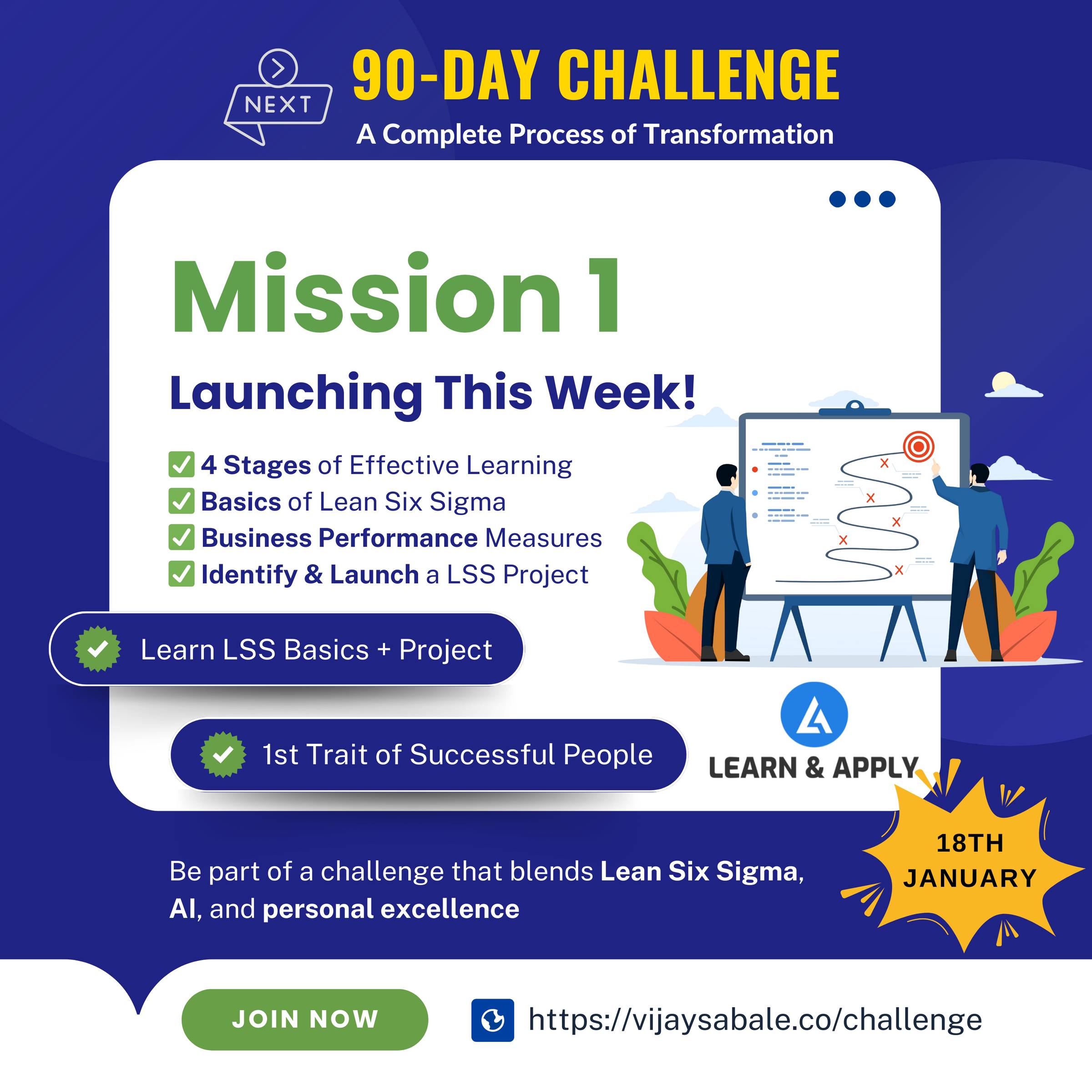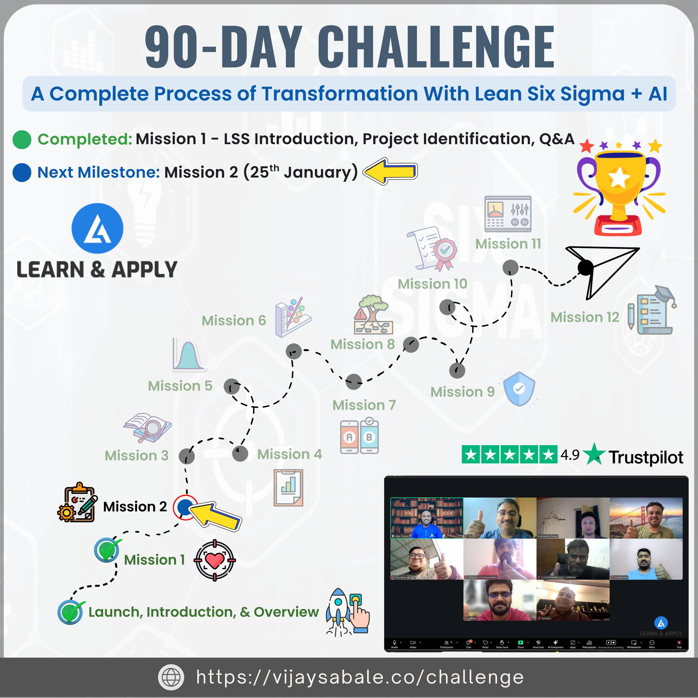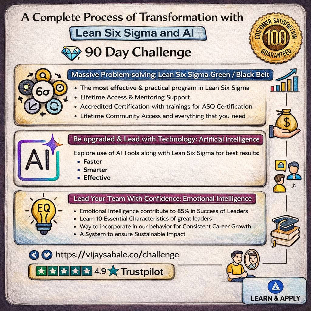 Dear Reader, We are glad to announce that, our new 90-Day Challenge in Lean Six Sigma + AI Begins on 10th January - tomorrow! ๐ŸŽฏ If you truly want ๐Ÿฎ๐Ÿฌ๐Ÿฎ๐Ÿฒ ๐˜๐—ผ ๐—ฏ๐—ฒ ๐—ฎ ๐—ฏ๐—ฟ๐—ฒ๐—ฎ๐—ธ๐˜๐—ต๐—ฟ๐—ผ๐˜‚๐—ด๐—ต ๐˜†๐—ฒ๐—ฎ๐—ฟ in your career, this is your moment. ๐Ÿ“š Our ๐Ÿต๐Ÿฌ-๐——๐—ฎ๐˜† ๐—–๐—ต๐—ฎ๐—น๐—น๐—ฒ๐—ป๐—ด๐—ฒ ๐—ถ๐—ป ๐—Ÿ๐—ฒ๐—ฎ๐—ป ๐—ฆ๐—ถ๐˜… ๐—ฆ๐—ถ๐—ด๐—บ๐—ฎ + ๐—”๐—œ is designed for professionals who donโ€™t just want knowledge โ€” they want ๐—ฟ๐—ฒ๐—ฎ๐—น ๐—ฐ๐—ฎ๐—ฝ๐—ฎ๐—ฏ๐—ถ๐—น๐—ถ๐˜๐˜†, ๐—ฐ๐—ผ๐—ป๐—ณ๐—ถ๐—ฑ๐—ฒ๐—ป๐—ฐ๐—ฒ, and ๐—ฐ๐—ผ๐—ป๐˜€๐—ถ๐˜€๐˜๐—ฒ๐—ป๐˜ ๐—ฐ๐—ฎ๐—ฟ๐—ฒ๐—ฒ๐—ฟ ๐—ด๐—ฟ๐—ผ๐˜„๐˜๐—ต. ๐Ÿ† Over 90 days, you will learn how to ๐˜€๐—ผ๐—น๐˜ƒ๐—ฒ ๐—ฟ๐—ฒ๐—ฎ๐—น ๐—ฏ๐˜‚๐˜€๐—ถ๐—ป๐—ฒ๐˜€๐˜€ ๐—ฝ๐—ฟ๐—ผ๐—ฏ๐—น๐—ฒ๐—บ๐˜€, apply ๐—Ÿ๐—ฒ๐—ฎ๐—ป ๐—ฆ๐—ถ๐˜… ๐—ฆ๐—ถ๐—ด๐—บ๐—ฎ ๐˜๐—ต๐—ฒ ๐—ฟ๐—ถ๐—ด๐—ต๐˜ ๐˜„๐—ฎ๐˜†,...