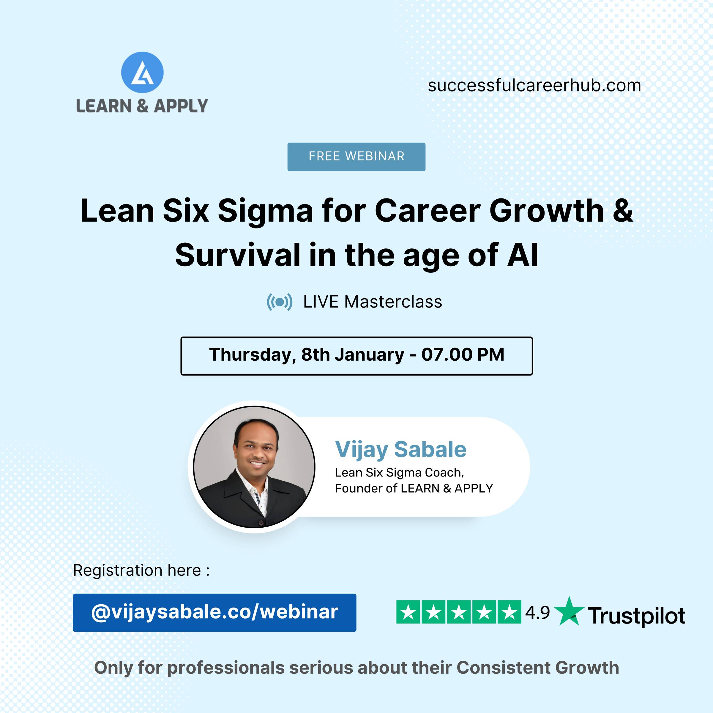 Dear Reader, Tomorrow, on 8th January - I have planned a free session for you regarding Lean Six Sigma for Career Growth & Survival in the age of AI. ๐Ÿ’ฅOnly Learning...No Sales Pitch! โœ๐Ÿป Learn how professionals across industries stay relevant, visible, and valuable โ€” even as AI transforms the workplace. ๐ŸŽฏ 90 Minutes | Live | Practical | No Experience or Expertise required โฐ Limited Seats | Live Session Only To ensure interaction and quality, seats are limited. Book Your Seat Now Take your...